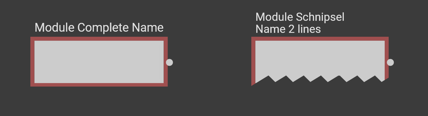 Let’s start with the basic form: components are shown as a rectangle, name in the title, connector as a small circle. If it is a code snippet, it is shown as a truncated rectangle.
